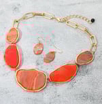 • Striking jewelry set featuring a statement necklace with irregular stone-shaped accents and matching earrings. Designed to add vibrant flair to your outfit, this set blends bold style with elegant detailing for a show-stopping look.